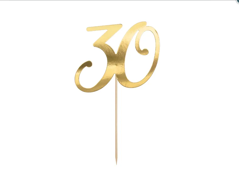 Dekorieren Sie die Geburtstagstorte mit dieser hübschen Dekoration. Der Zahnstocher "30" in Goldfarbe ist auf einem einzigen Spieß befestigt. Er ist einsatzbereit und wartet nur darauf, auf Ihre schöne Torte gesetzt zu werden. Für eine einfache und wirkungsvolle Dekoration genügt es, eine Kerze oder eine kleine Miniatur hinzuzufügen. Hinweis: Setzen Sie die Kerze nicht nahe an den Banner oder darunter.