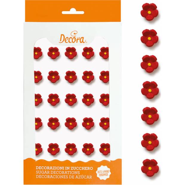 30 Zuckerdekorationen kleine rote Blumen - ILoveCakes.de