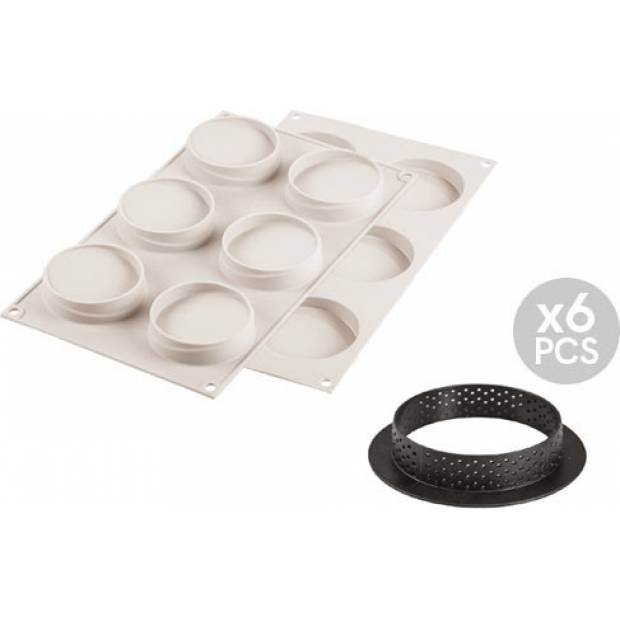 Ihre Kuchen und Torten können ein völlig modernes Erscheinungsbild haben. Dafür sorgt die Silikonform KIT MINI TARTE GLAM von Silikomart, die aus zwei Bauteilen besteht: 6 mikroperforierte Ringe zur Erstellung einer knusprigen Kuchenbasis und eine Silikonform, die eine geometrische, minimalistische und moderne Verzierung nachbildet. Spezielle Ringe mit einem Durchmesser von 80 mm bestehen aus dem neuen antihaftbeschichteten Kunststoffmaterial, das sich ideal für eine gleichmäßige Hitzeverteilung im Ofen eignet. Die Backformen sind eine Art Mini Tarte Glam-Baukasten, der es Ihnen ermöglicht, sehr moderne Süßigkeiten mit außergewöhnlicher Verzierung auf der Oberfläche herzustellen. Abmessungen der Form: Ø 70 x 18 mm. Abmessungen des Ringes: Ø 80 x 20 mm, Volumen 276 ml.