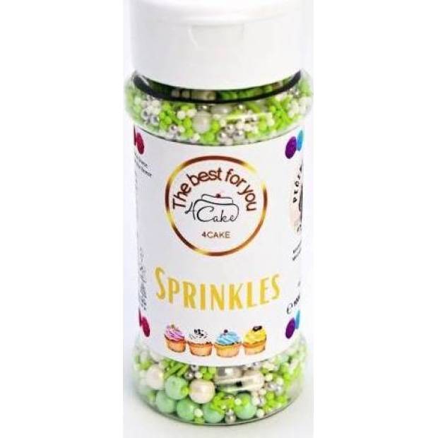 4Cake Sugar Dekorationen weiß, silber und grün Mint Breeze (100 g) Besky Edition