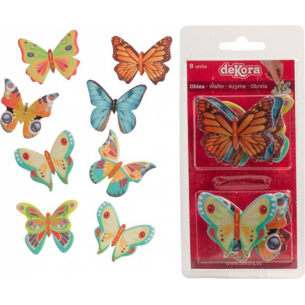 Bunte Schmetterlinge aus essbarem Papier sind bereit, auf Ihre Cupcakes und weitere Desserts gesetzt zu werden. Diese Schmetterlinge können Sie für Muffins, Cupcakes, Kuchen und Desserts verwenden. Im Pack 8 Stück bunte Schmetterlinge. Es handelt sich um ein laktosefreies Produkt.
