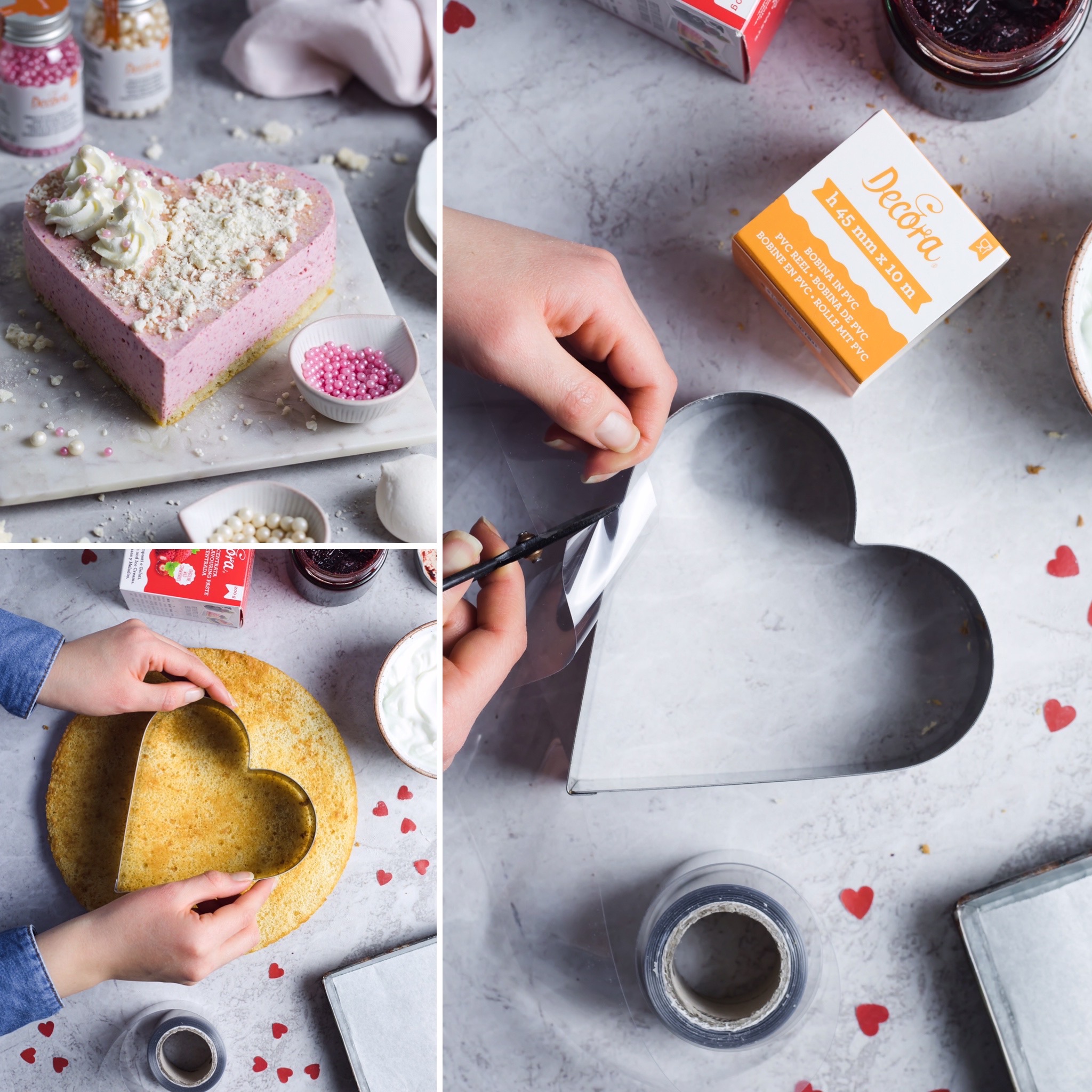 Transparente Zellulosefolie aus nicht haftendem PVC für den Einsatz in der Lebensmittelindustrie. Durch die Nichthaftung eignet sie sich ideal beim Backen zum Abdecken von Konturen von Tortenringen und zur Verarbeitung von Schokolade und Glasur. Das Band wird im Teig verwendet, um Fondant-Kräuselungen, Streifen oder Formen herzustellen, Semifreddo und als Unterstützung in klappbaren Formen und Stahlringen. Zellstoff für Lebensmittel, hervorragend als antihaftendes Mittel für Formen aus Edelstahl und Klappformen, damit Kuchen und alle Arten von Süßigkeiten genauer und sauberer werden. Nach dem Ausrollen kehrt das PVC-Band perfekt flach und glatt zurück. Nicht zum Kochen verwenden. Abmessungen: Höhe 5 cm, Länge 50 m.