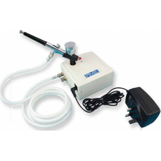 Airbrush-Technik ist ideal zur Oberflächendekoration von Crem- und Fondantkuchen. Mit einer Airbrush-Pistole können Sie optimal Kuchenvorlagen umranden und ausmalen oder einfach so malen. Zum Lieferumfang gehört: