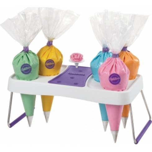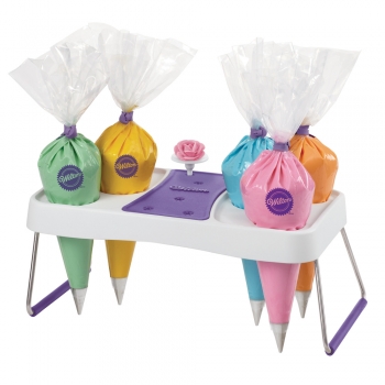 Wenn Sie schon immer einen ordentlicheren und übersichtlicheren Ort für Ihre kreative Tätigkeit gesucht haben, ist dieses Stativ ein großartiger Ort zum Einstieg. Das robuste Stativ ist speziell darauf ausgelegt, Dekorbeutel mit einem Durchmesser von 8 Zoll, 12 Zoll oder 16 Zoll zu halten, sodass sie leicht zu greifen sind. Der zentrale Bereich ist speziell für Blumenspitzen konzipiert, sodass Sie sie mit einer Hand ablegen und aufnehmen können. Es hält bequem bis zu sechs unbeschädigte Beutel und sechs Blumenspitzen gleichzeitig. Spezielle Silikonfüße verhindern, dass sich der Halter bewegt oder auf der Arbeitsfläche verrutscht, und sind so konzipiert, dass sie fest sitzen und griffbereit bleiben für eine einfache Lagerung.