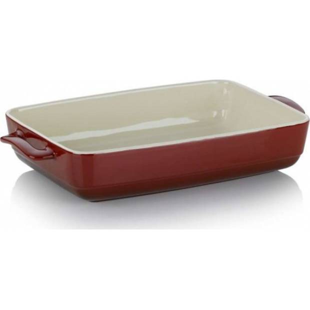 Bei der Zubereitung von Speisen ist es wichtig, wenn man sich auf seine Küchenhelfer verlassen kann. Diese robuste Keramikschale kann als Backform für das Backen beliebter Gerichte verwendet werden und ebenfalls zum Servieren genutzt werden. Im Ofen hält sie Temperaturen bis zu 280 Grad Celsius stand. Die rot-beige Kombination wirkt sehr geschmackvoll und originell, der Behälter ist eine Zierde des Tisches. Die Handhabung ist dank der Griffe an den Seiten des Bräters einfach. Sie ist aus hochwertiger Keramik gefertigt, die hohen Temperaturen und geringeren Stößen standhält. Sie kann in der Spülmaschine gereinigt werden. Dieses Modell wird ohne Deckel geliefert. Ihre Abmessungen betragen 22 x 37,5 x 7 cm.
