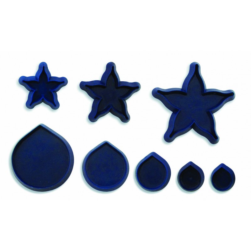 Mit diesem Set bereiten Sie aus Modelliermasse oder Blütenpaste im Handumdrehen eine perfekte essbare Rosenblüte zu. Schneideformen auf einer rutschfesten Unterlage auslegen und darauf eine dünne Schicht Zuckerpaste legen und sorgfältig ausrollen, bis die Formen ausgestochen sind. Danach lassen Sie sie aus den Ausstechformen lösen und beginnen Sie mit dem Verbinden der einzelnen Blätter. Sie können sie zusätzlich mit Stützen formen. Wenn Sie Blütenpaste verwenden, lassen Sie diese zuerst fest werden (ideal auf einer gewölbten Oberfläche, damit die Blütenblätter Struktur bekommen). Vor dem Benutzen empfehlen wir, die Ausstechformen mit PME-Antihaftpaste auszukleiden. Das größte Blütenblatt hat die Abmessungen 41mm x 47mm, das kleinste dann 9 x 11mm. Die größte Kelchform hat die Abmessungen 23 x 56mm; der kleinste 11 x 30mm.