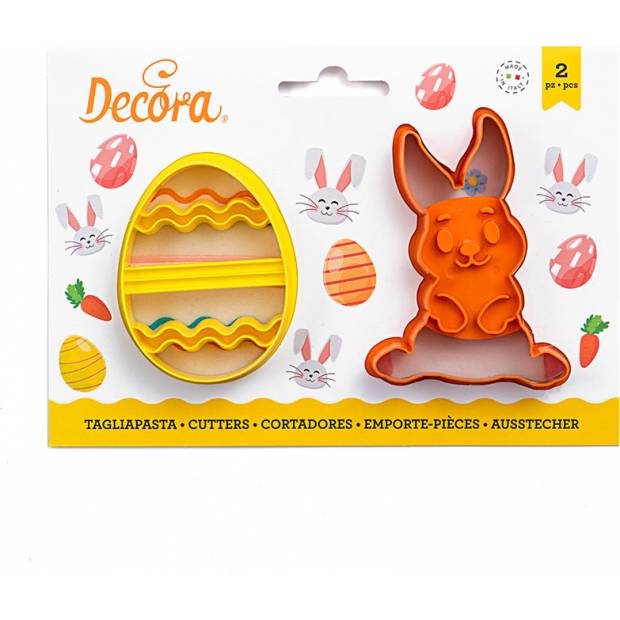 Set von Ausstechformen mit österlichen Motiven ist ideal für die Herstellung süßer Osterplätzchen oder süßer Dekorationen aus Fondant oder Zuckerpaste. Die Ausstecher bestehen aus Kunststoff und lassen sich leicht mit heißem Wasser und Spülmittel reinigen. Die Verpackung enthält: 2 Kunststoff-Ausstechformen für Kekse. 1 Ei 5,5x7,5x2,2 cm und einen Kranz 7,5x5,5x2,2 cm.