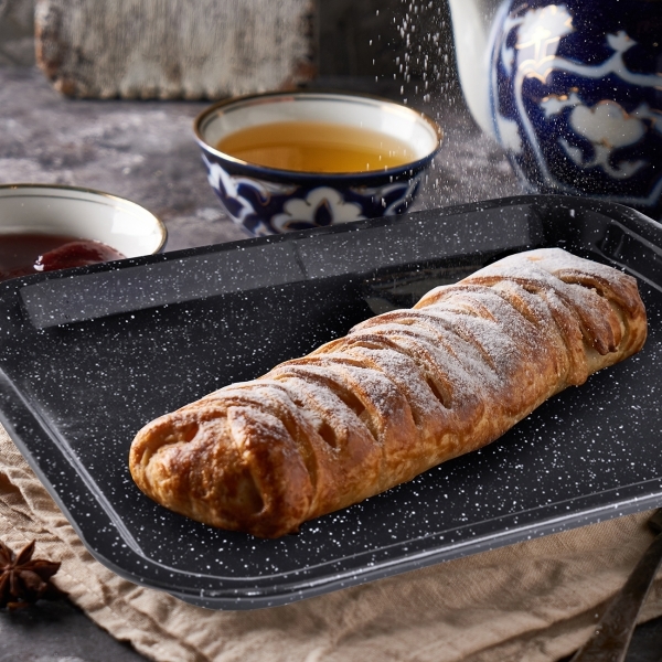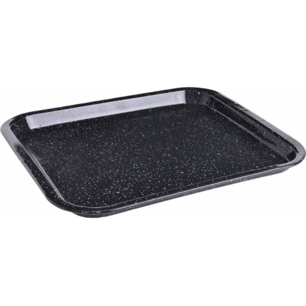 Emaillierte Bleche eignen sich zur Vorbereitung von Gebäcken, Kuchen, Süßspeisen und anderem Gebäck, aber auch zum Braten von Fleisch, zum Überbacken von Kartoffeln, Nudeln, Gemüse... Material: Blech mit emaillierter Oberflächenbehandlung. Abmessungen: 42x37x3,5 cm (innen 38x34x3,5 cm).