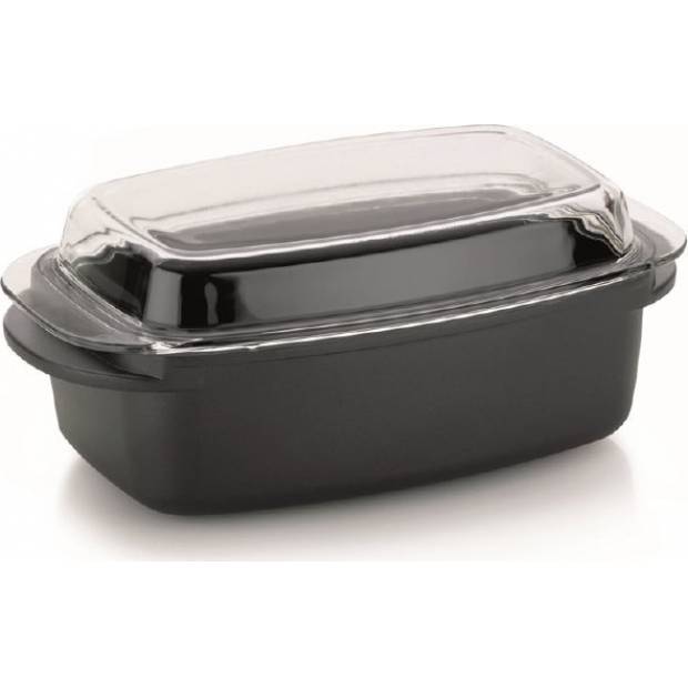 Backblech mit glasklappigem Deckel aus druckgegossenem Aluminium, Wandstärke 5 mm. Der Backblech verfügt über eine hochwertige, antihaftbeschichtete GREBLON - C3 Oberfläche. Die 3-schichtige, keramisch gefüllte Teflon-Schicht ist kratzfest. Verwendung: Gas, Ceran, Induktion, Elektro