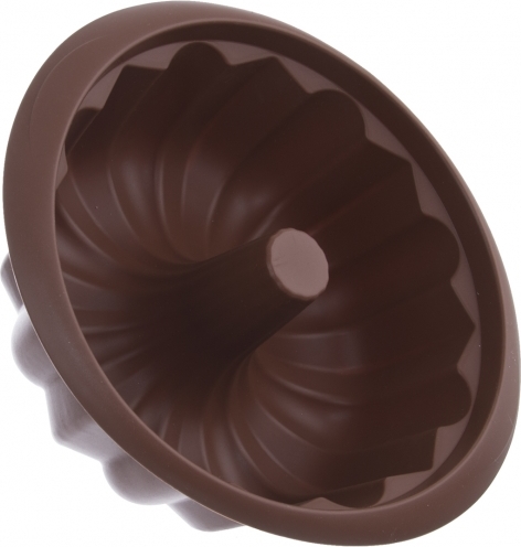 Form für Gugelhupf mit praktischen Griffen. Braun. Material: Silikon - Form ist leicht, kompakt, antihaftend, der Teig klebt nicht daran, nimmt Gerüche aus Lebensmitteln nicht auf, sie ist hitzebeständig von -40 °C bis +220 °C. Leicht zu reinigen, spülmaschinenfest. Maße: Ø 26 cm, H 9,5 cm.