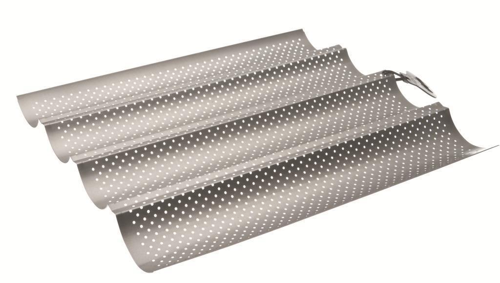 Backblech für Baguettes mit Antihaftbeschichtung für einfaches und schnelles Backen von 4 Baguettes mit einer goldenen und knusprigen Kruste.