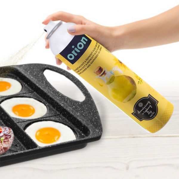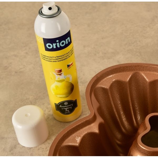 Sonnenblumen-/Rapsöl in Sprayform erleichtert das Backen. Einfach in die Form sprühen, bevor sie gefüllt wird. Es gelangt in alle Falze in einer gleichmäßigen Schicht, was besonders bei Back- oder Auflaufformen mit reichhaltiger Struktur zu schätzen ist, da das Ausstreichen mit dem Pinsel lange dauern würde. Und für eine gesündere Zubereitung von gebratenen, rösti-ähnlichen Gerichten in Pfannen ist dies eine ideale Variante.
