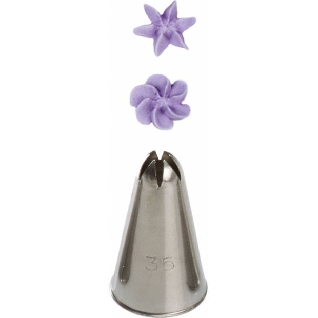 Metall-Spitzöffnung für Backkunst 35 garantiert Ihnen eine präzise und einzigartige Verzierung. Die Spitze kann wiederholt mit einem Spritzbeutel verwendet werden. Hergestellt aus Edelstahl, Rückstände von Fett bleiben auf der Oberfläche nicht haften. Nicht spülmaschinengeeignet.