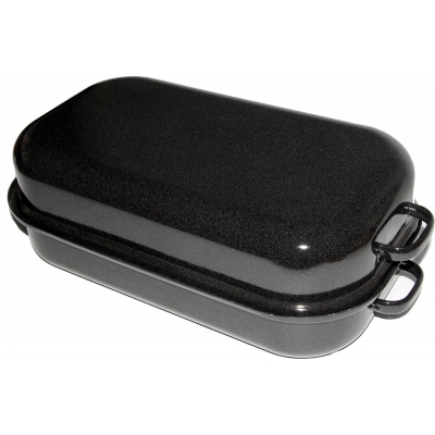 Beidseitig emaillierter Backblech aus Stahlblech ist geeignet für Gas-, Elektro- und Heißluftofen. Traditioneller emaillierter Bräter wird wegen seiner hochwertigen Verarbeitung geschätzt. Das Blech ist 1 mm dick, wodurch es formstabil und langlebig ist. Der zweifache Bräter mit hohem Glanz ist außen mit schwarzem Emaille versehen. verleiht diesem Produkt große Belastbarkeit, geringe Pflegebedürftigkeit und elegantes Aussehen. Wir empfehlen, ihn von Hand zu waschen. Innenmaß 35 cm, Außenmaße 42 x 22 cm.