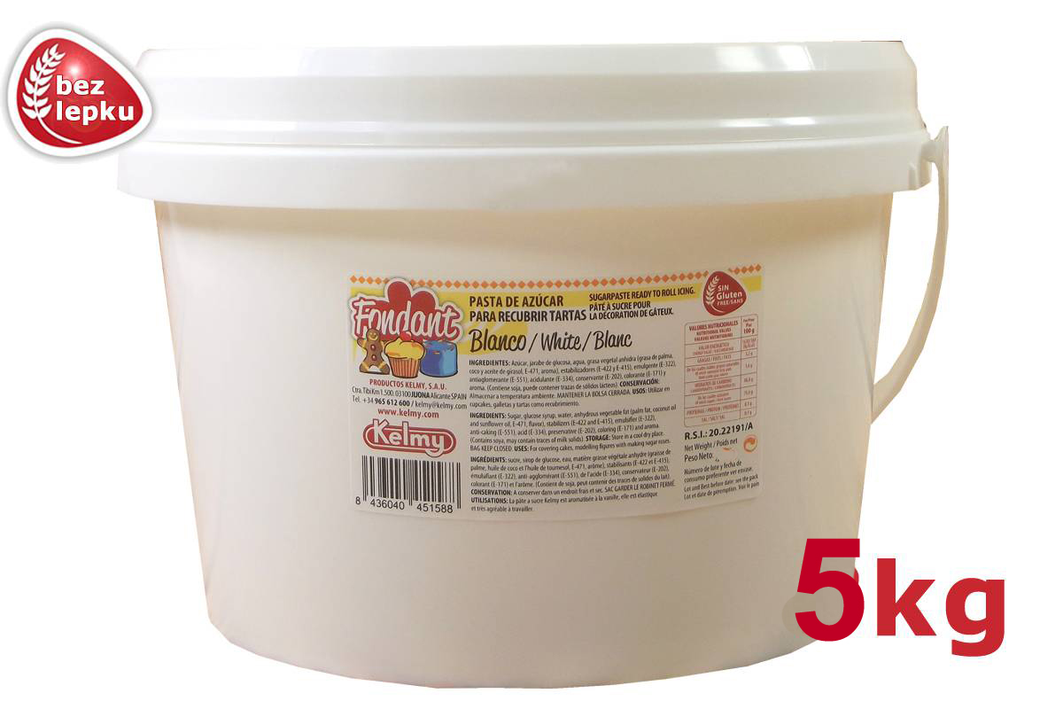 Das Verziehmittel Kelmy dient in erster Linie dem Überziehen von Kuchen, aber Sie können damit auch modellieren (modellierte Verzierungen sollten länger trocknen). Weiße Masse ist schneeweiß, ohne Gelbstich.
