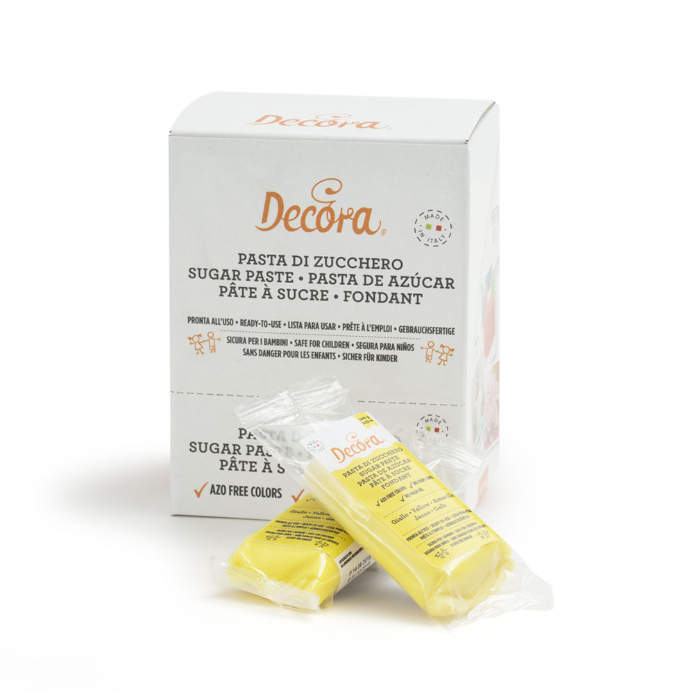 Gelbe Modelliermasse zum Dekorieren von Torten und Zubereiten von Verzierungen. 100 g Packung.