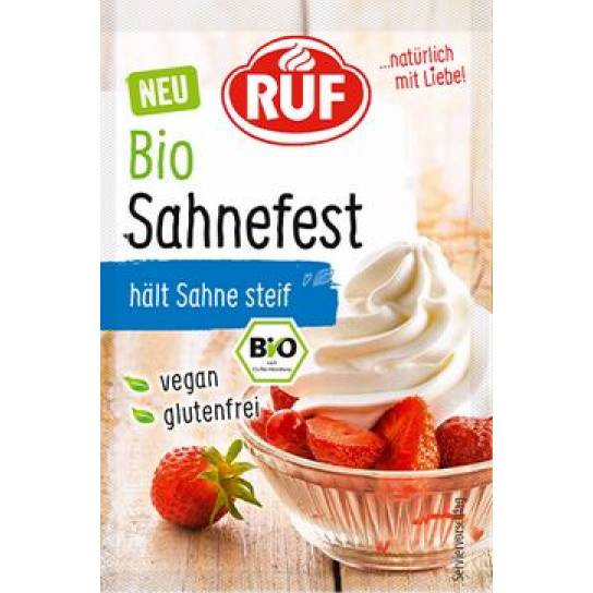 Es ist wieder soweit, Sie backen eine großartige cremige Torte für den großen Festtafel. Komplett vorbereitet, mit einer mit Einspritzdüse aufgepumpter Sahne, geht die Torte in den Kühlschrank. Gelegentlich passiert es, dass die Sahne zusammensackt, was wirklich unangenehm ist. Mit etwas Hilfe können wir dieses Unglück retten. Bio-Sahne-Stabilisator ist ein feines Pulver, das die Cremeschaum schön fest macht und das Absetzen von Wasser verhindert. Das bedeutet, dass Ihre Kuchen auch nach einigen Stunden wie gerade frisch gebacken aussehen und die Creme fest bleibt. Außerdem verhindert unsere organische Feststoffmasse das schnelle Durchweichen der Grundlagen von Kuchen, daher kann man geschlagene Sahne auch als Grundlage für frisches Obst verwenden. Alle Zutaten für unsere Bio-Produkte stammen aus zertifiziert ökologischem Landbau. Bio Nr.: DE-ÖKO-001. 1. Schlagen Sie 250 g kalte Sahne kurz auf. 2. Den Inhalt des Beutelchens mit etwas RUF Bio Bourbon-Vanillezucker mischen und bei ständigem Schlagen langsam zur Sahne hinzufügen. 3. Die Sahne steif schlagen und bis zum Servieren in den Kühlschrank stellen.