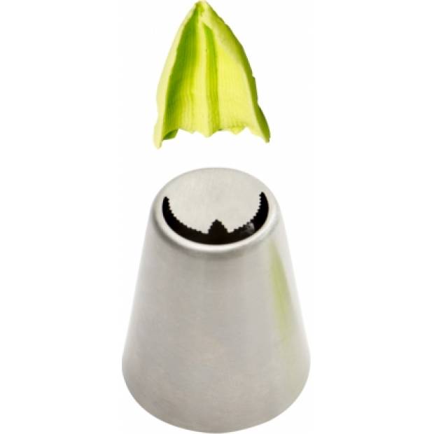 Eine Metall-Gebäckdekorationsspitze der Größe 5 für Blätter garantiert eine genaue und einzigartige Verzierung. Die Spitze kann wiederholt mit dem Spritzbeutel verwendet werden. Sie besteht aus Edelstahl, Fettflecken bleiben nicht auf der Oberfläche haften. Nicht spülmaschinengeeignet.