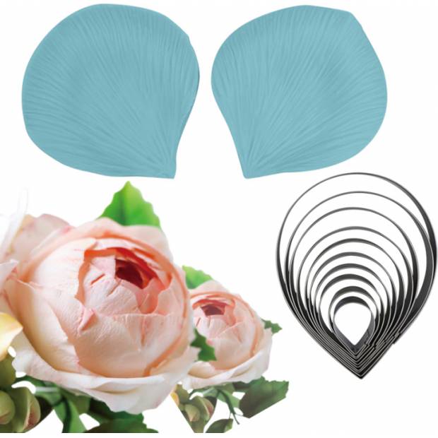 Mit diesem Spritzstern und Ausstecher können Sie perfekte Rosen mit Blüten und Blättern aus Marzipan, Fondant oder Modelliertee herstellen. Der Spritzstern und der Ausstecher