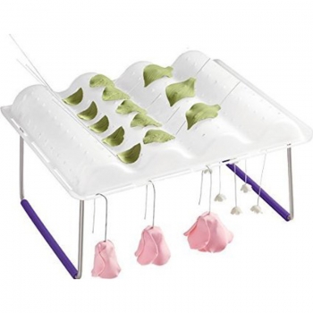 Forme fehlerlose Gummi-Paste und Blumen mit einer Blütentrocknungsmaschine. Einzigartig gekrümmte Wellblüten, die realistische Blüten schaffen, während das erhöhte Regal es ermöglicht, Drahtblumen aufzuhängen und so ihre natürliche Form zu bewahren. Ideal für Draht- und drahtlose Fondantblumen und -blätter, wenn sie trocken sind. Belüftungsöffnungen ermöglichen ein schnelleres Trocknen durch Luftzirkulation. Der Außenrand bietet genügend Platz für größere zusammengesetzte Blumen oder stärkere Drahtstücke. Bewegliche Füße sorgen für außergewöhnliche Stabilität und klappbare Füße falten sich platzsparend zusammen.