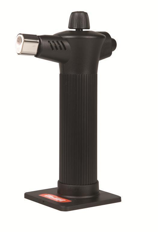 Füllpistole für Gas. Ideal zum flambieren, Bräunen und Karamellisieren von Crème brûlée. Das Volumen der Pistole beträgt 0,028 l; sie brennt 70–100 Minuten. Höhe der Pistole 18 cm. Material: Kunststoff.