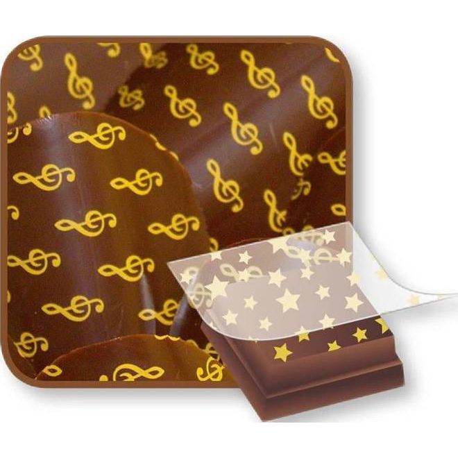 Größe: 36,5 x 25 cm (Muster ca. 33,5 x 23 cm) Schokoladen-Dekorationsfolie, die insbesondere für Pralinen, Tortenaufleger mit Schokoladenglasur und andere Schokoladenprodukte verwendet werden kann
