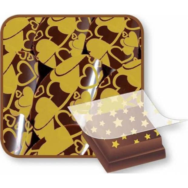 Dekorfolie für Schokoladen-Dekorationen, hauptsächlich verwendbar für Pralinen, Aufleger auf Torten mit Schokoladenüberzug und weitere Schokoladenprodukte.