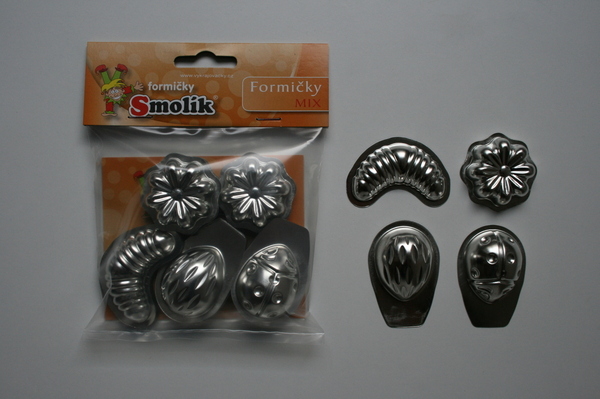 Formen haben einen Durchmesser von 3,5 – 5,5 cm. Sie sind aus gesundheitlich unbedenklich vernickeltem Blech hergestellt, von dem das Gebäck sich immer gut lösen lässt. Das Set enthält zwanzig Förmchen – je fünf Stück von vier Formen.