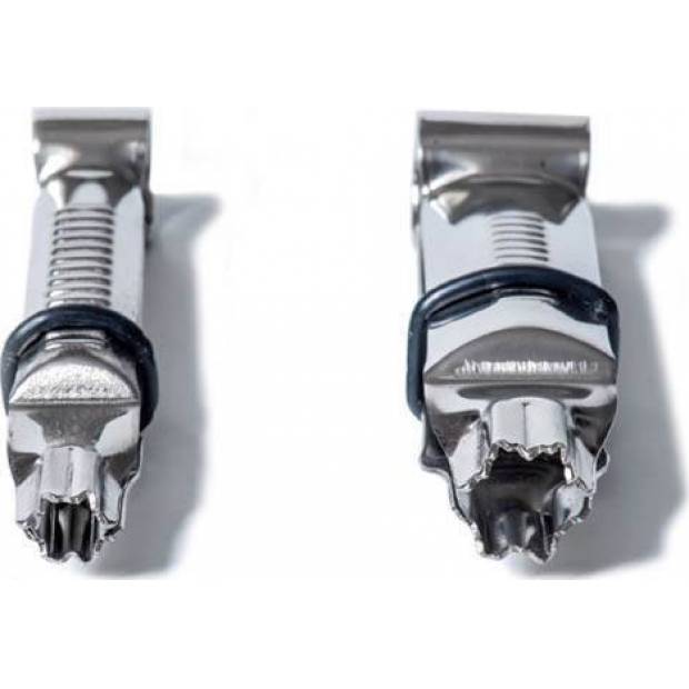 Für eine einfache und schnelle Verzierung von Fondant ist dieses Krimpwerkzeug für Kuchen perfekt. Durch das Zusammenkippen der Zange drücken Sie ein Sternchen in den Teig. Damit die Formen gleichmäßig und gleich groß sind, sind die Zangen mit einem Sicherungsband versehen. Die Breite der Sternchen beträgt 12 und 17 mm. Die Zangen bestehen aus Edelstahl. Die Verpackung enthält zwei Zangen.