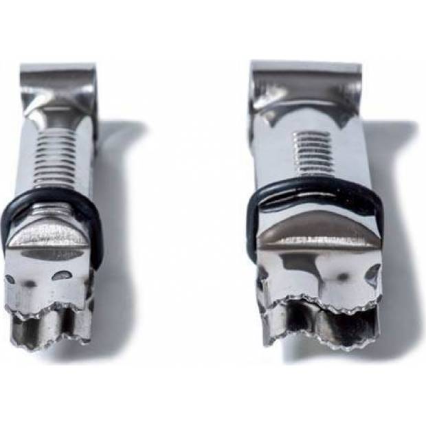 Zum Verzieren eines mit Zuckerguss bedeckten Kuchendeckels eignen sich diese Crimp-Kuchenklammern mit der Wellenkopf-Nase. Zum Verzieren genügt es, die Masse mit den Klammern abzustoßen und so eine Welle darauf zu drücken. Die Zange ist mit einem Sicherungsgummi versehen, damit alle Wellen gleich groß sind. Die Breite der Wellen beträgt 12 und 17 mm. Die Zangen bestehen aus Edelstahl. Die Packung enthält zwei Zangen.