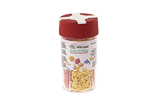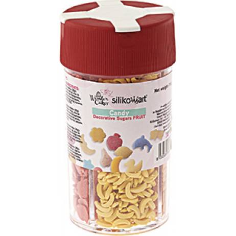 4 Arten von dekorativen Zuckerstreuseln in Form von Früchten. Gewicht 150g.
