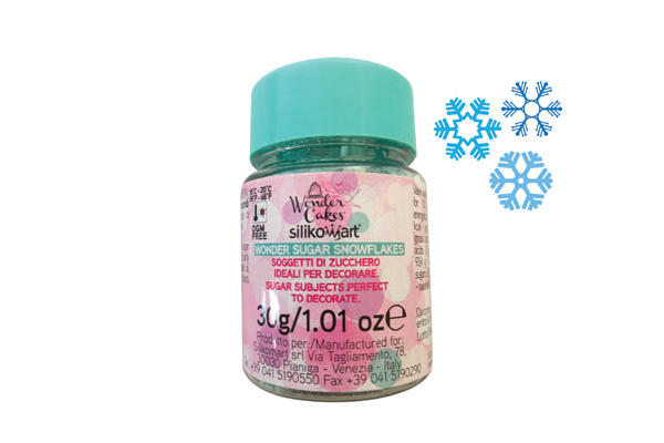 Zuckerstreusel in Form von Schneeflocken zum Verzieren von Torten, Bonbons und Tassen.