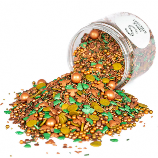 Wir empfehlen diese rote Farbexplosion, um Desserts einen attraktiven, ja sogar auffälligen Look zu verleihen. Dekorieren Sie zum Beispiel eine Torte in knalligen Farben. Die dichten runden, gold-roten Perlen und mittelgroßen weißen Kugeln in der Mischung sind mit knackiger, köstlicher Schokolade gefüllt. Schön weich und zum Verzehr bereit. Keine harten Zuckerstückchen. Um Ihre Lieblingsstreusel zu genießen, geben Sie den Inhalt der Packung in eine größere Schüssel oder ein Glas und rühren Sie um.