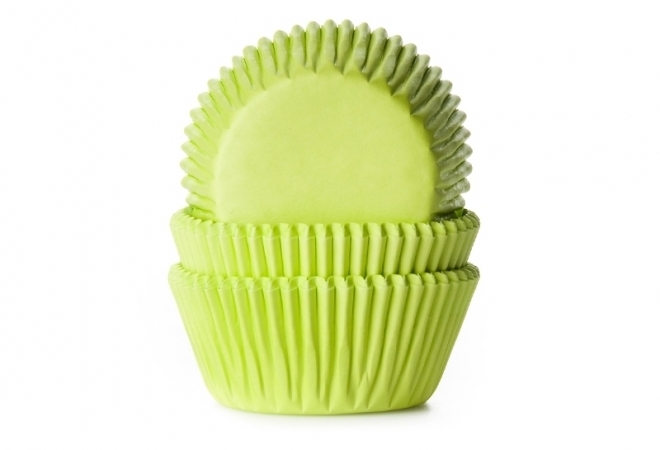 Eine Set von 50 kreativ aussehenden Backförmchen für das einfache und schnelle Zubereiten kleiner Desserts. Die Förmchen in hellgrüner Farbe ohne Dekoration.