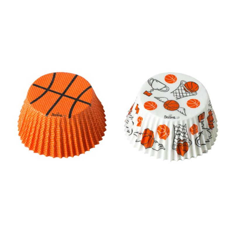 Papier-Cupcake-Förmchen, Motiv Basketball. In der Packung 36 Stück.