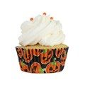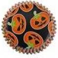 Papierschmettkörbchen für Cupcakes mit Halloween-Mmotiv Kürbis Packung 30 Stück.