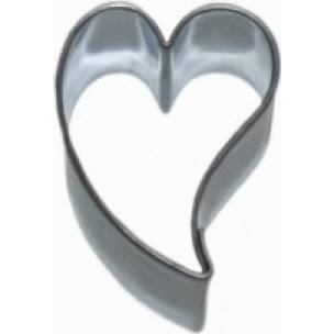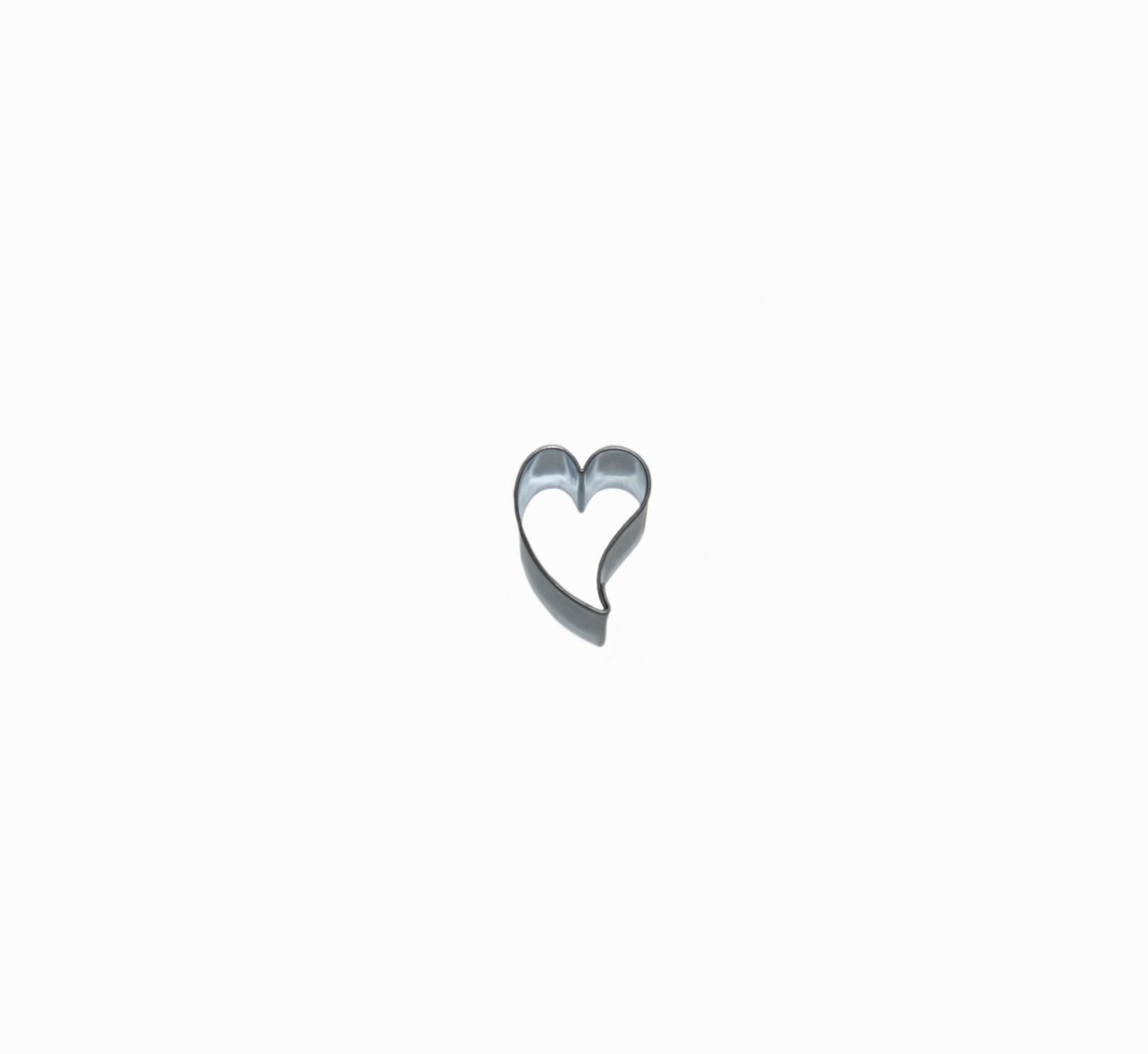 Ausstechform in Herzform, die unregelmäßig ist. Damit lassen sich interessante Lebkuchen oder kleine Kekse oder Dekorationen für Kuchen herstellen. Die Ausstechform ist eine sehr praktische Hilfestellung beim Backen von Zuckerwerk.