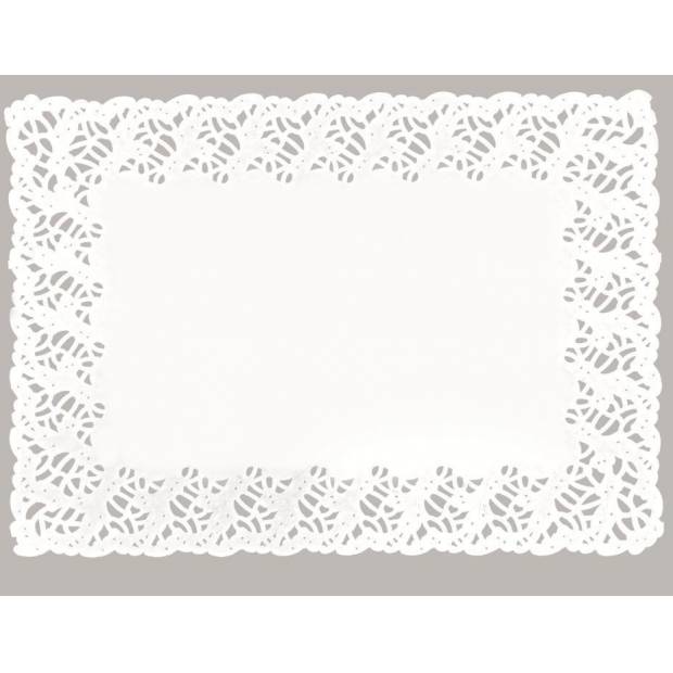 Dekorative Spitzbordüre rechteckig, weiß. Abmessungen 30 x 18, Packung 100 Stück.