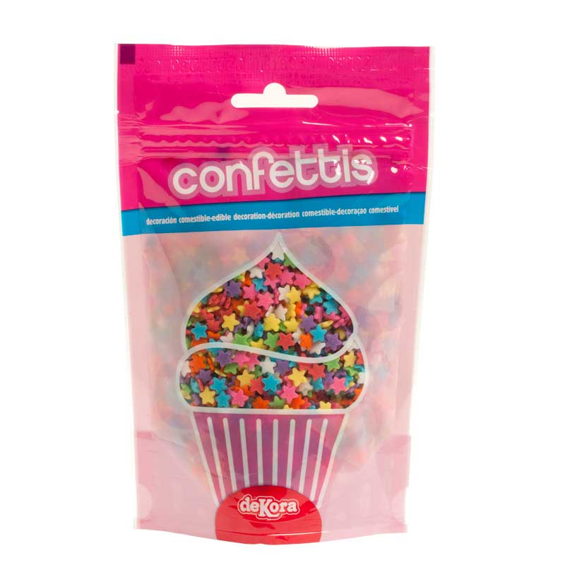 Säckchen enthält essbare Konfetti in Form farbiger Sterne. Für eine hübsche Torte oder Dekor für Muffins. Die Packung enthält 100 Gramm essbare Zuckerornamente. Diese Konfetti sind in Form kleiner farbiger Sterne: pink, grün, blau, orange, lila, gelb und weiß. Diese Zuckerornamente eignen sich ideal zum Verzieren einer Geburtstags- oder Taufkuchen. Man kann sie statt essbarer Rinde über das frisch vermählte Paar streuen, usw.