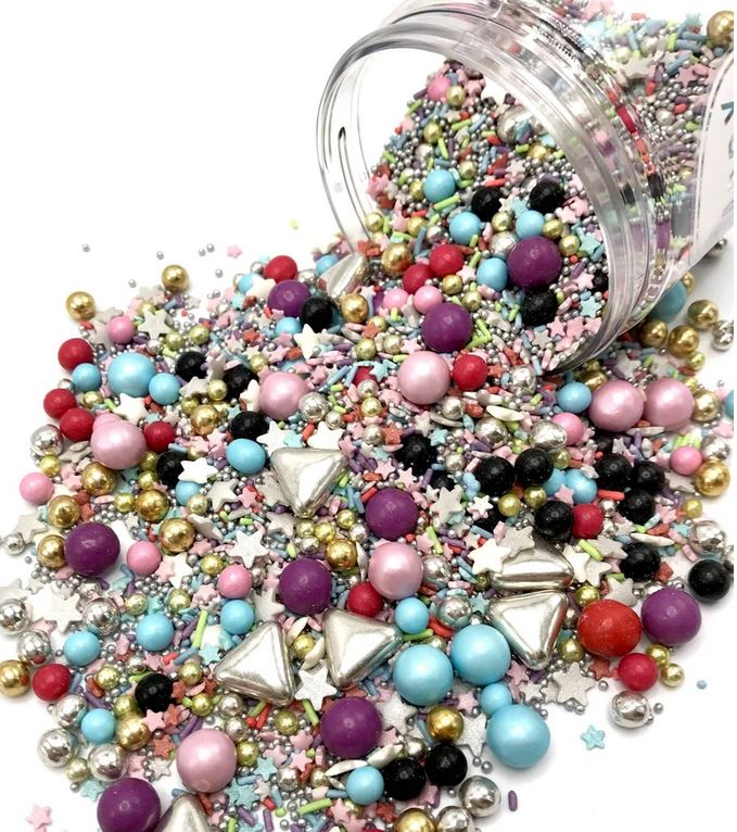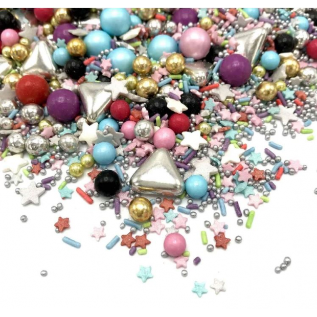 Perfekt für jeden Anlass – sei es eine Geburtstagsfeier oder Verlobung! Unabhängig vom Anlass lieben wir die Party und diese Dekorationsmischung sorgt dafür, dass jeder eine noch bessere Zeit hat! Ganz besondere Mischung aus bunten Schokoladenkugeln, silbernen Spritzern, Sternen und Metallic. Wir sind bereit zu feiern, und sobald du deine Kuchen, Torten oder Kekse verzierst, können wir diese Party starten!
