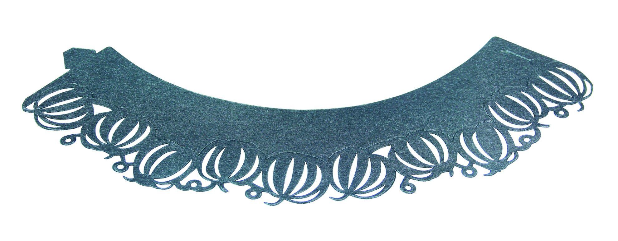 Ornamentale Spitzenverarbeitung am Cupcake-Kopf in schwarz hat die Form von Kürbissen. Ideal für Halloween-Cupcakes und Muffins.