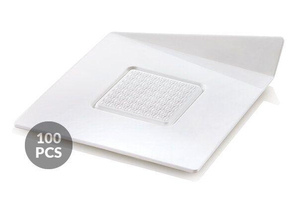 Dekorative quadratische Unterlage von Silikomart. In der Packung 100 Stück.