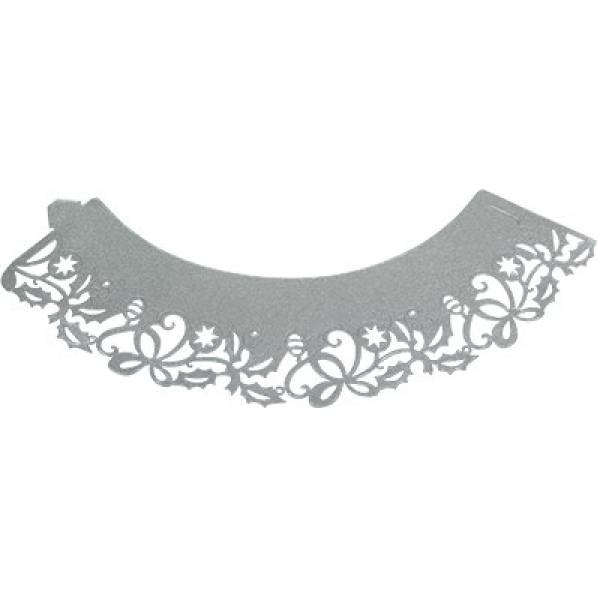 Verzierter Spitzenkragen für 12 Cupcake/Muffin-Förmchen, silberfarben