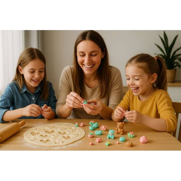 Vor der Verwendung die Masse herausnehmen, bei Raumtemperatur entspannen lassen und kurz erwärmen (z. B. in der Mikrowelle ein paar Sekunden). Danach erneut gründlich durchkneten – sie wird weich und wieder perfekt formbar.