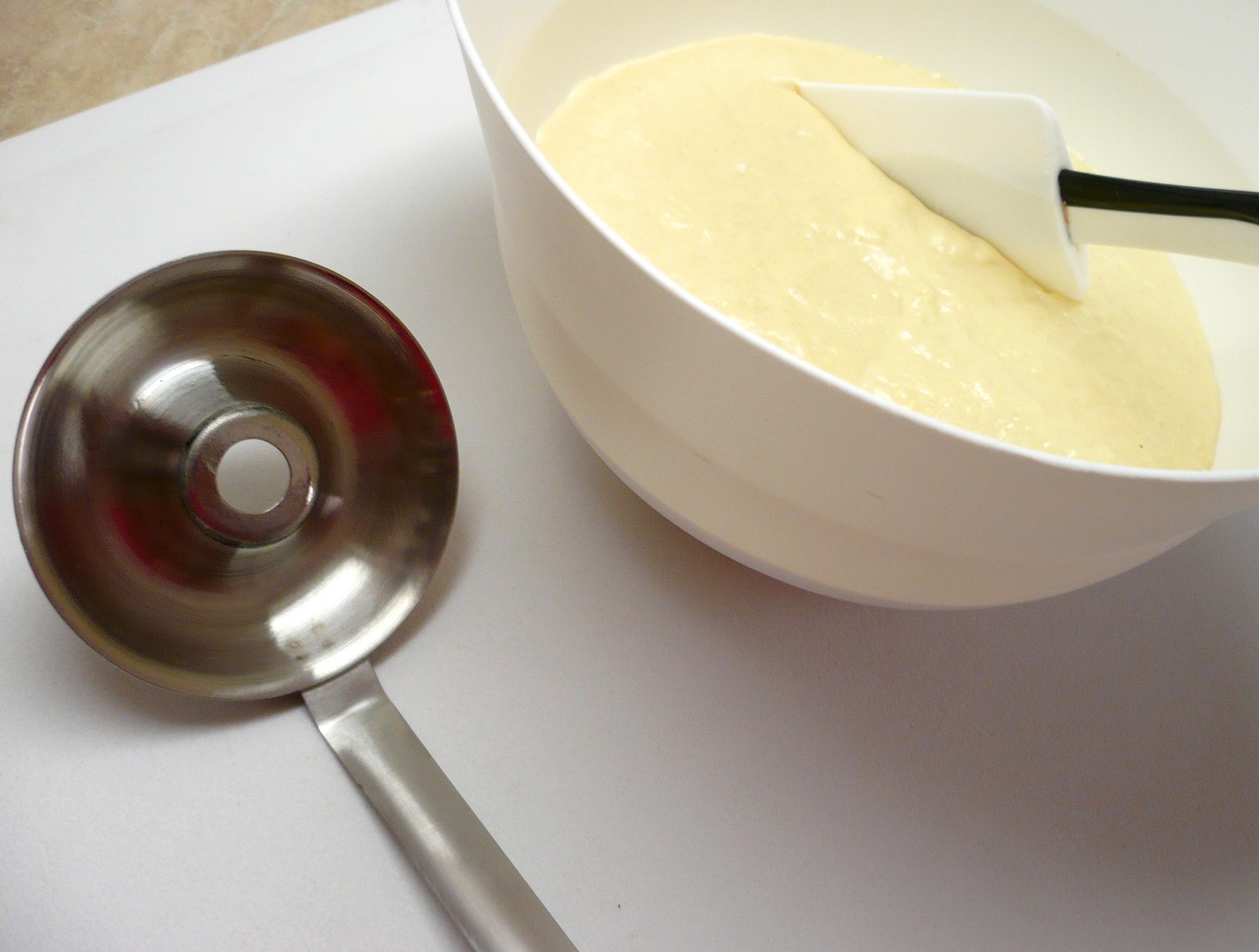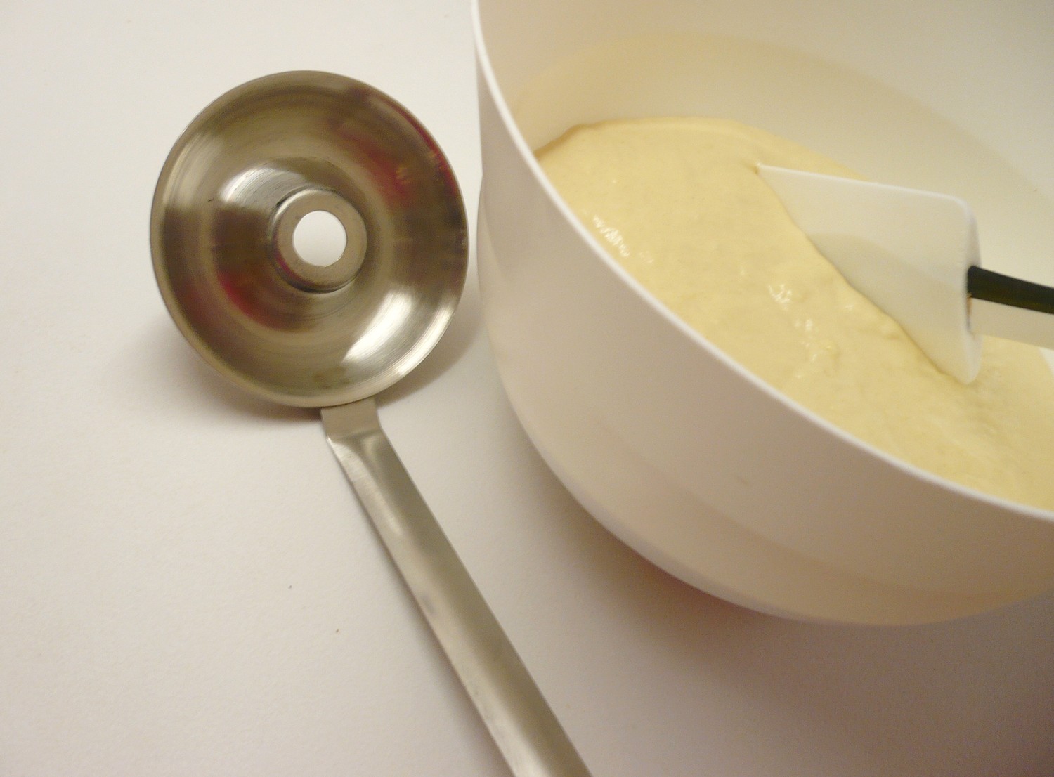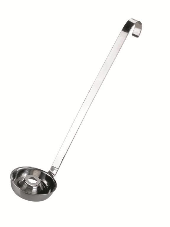 Mit Hilfe dieses rostfreien Formlöffels lassen sich sehr schnell amerikanische Donuts zubereiten, das sind Donuts in Ringform, besser bekannt als Donuts. Donuts werden aus Hefeteig hergestellt und von beiden Seiten in einer höheren Fettschicht frittiert, bis sie goldbraun sind. Sie werden entweder einfach mit Puderzucker bestäubt oder mit Schokolade bestrichen; auch andere süße Glasuren eignen sich. Auf der Oberfläche werden die Glasuren vor dem Trocknen beispielsweise mit gehackten Nüssen oder anderem Dekor bestreut. Mit dieser Form lässt sich sehr gut arbeiten; ihr Vorteil ist eine sehr schnelle Zubereitung der Donuts. Dünnflüssiger Hefeteig wird in den Löffel gegeben, der zuvor ins Öl getaucht wird; die Oberfläche wird geglättet und der gesamte Löffel taucht in das heiße Fett. Der Teig vergrößert sein Volumen und nach kurzer Zeit lässt sich der Donut aus dem Löffel herauskippen und eigenständig fertig braten. Nach dem Braten werden sie auf ein Papiertuch gelegt. Die Arbeit mit dem Löffel ist leicht; vielleicht sind die ersten zwei bis drei Donuts nicht gerade Ausstellungstücke, aber nach dem Erlernen der Technik wird jeder stolz auf sein Werk sein. Meiner Meinung nach kann ich dieses Produkt nur empfehlen.