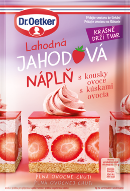 Zart-cremige und leichte Sahnefüllung mit Erdbeerstückchen voller Obstgeschmack. Sie ist ideal für die Zubereitung frischer Kuchen, Cupcakes und kleiner Kuchenstücke oder für Pfannkuchen und Donuts. Hält schön ihre Form. Ausgezeichnet auch als Dessert mit frischen Früchten. Einfach und leicht zuzubereiten. Anwendung: In ein höheres Gefäß 400-500 ml gekühlte Schlagsahne geben und den Inhalt des Beutels hinzufügen. Mit einem elektrischen Handrührbesen auf der höchsten Stufe 1 Minute bis zum Festwerden schlagen. Die Füllung kann aufgetragen und den Boden (Durchmesser 26 cm), Stücke, Rollen oder Cupcakes dekorieren.