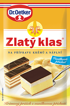 Allround-Hilfe Zlatý klas, originelles cremiges Pulver mit Vanillegeschmack, ist ideal für die Zubereitung von Vanillesoße für Dukatenschnitten, außerdem für Füllungen, Cremes, feine Teige oder Böden. Hervorragend auch in Kombination mit Schokolade, Kaffee, Mandeln, Rum oder Nüssen. Empfohlene Dosierung: Dicke Creme (40 g Zlatý klas, 50 g Zucker, 500 ml Milch), mitteldicke Creme (40 g Zlatý klas, 60 g Zucker, 800 ml Milch), dünne Creme (40 g Zlatý klas, 80 g Zucker, 1000 ml Milch)