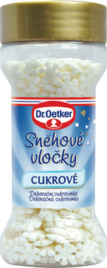 Zuckerkuck? Richtig: "Cukrové sněhové vločky jsou ideálním zdobením zimního a zvláště vánočního pečení. Stačí nasypat na čokoládovou polevu či krém a hned se cukrové promění v umělecké dílo. A děti Vám budou s radostí pomáhat se zdobením! Sněhovými vločkami si můžete taky ozdobit zákusky, dorty, puding či zmrzlinu."