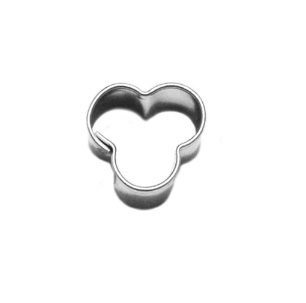 Glattes Mini-Ausstechwerkzeug in Kleeblattform aus vernickertem Blech.