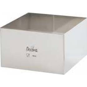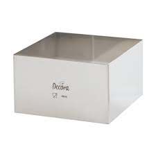 Rundring aus quadratischem Metall für die Zubereitung von gebackenen und ungebackenen Kuchen und Desserts. Legen Sie ihn mit Aluminumfolie oder Backpapier aus und füllen Sie ihn mit Teig oder Masse. Abmessungen 24 x 24 x 6 cm. Es gibt mehrere Größen und Formen von Ringformen zur Auswahl.